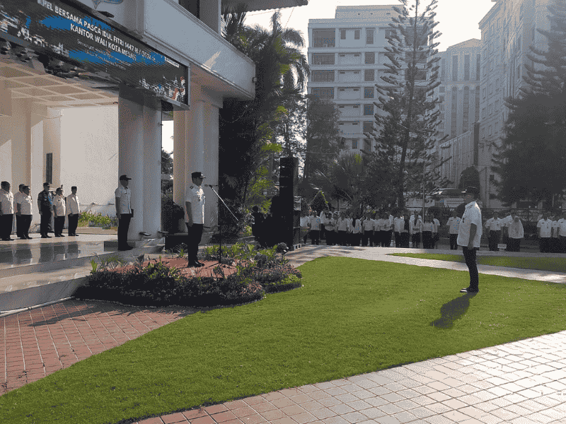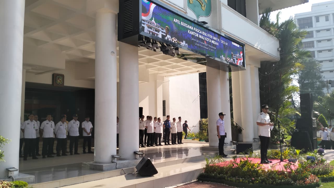 Apel bersama pasca Hari Raya Idul Fitri yang dilaksanakan pada hari Rabu, 25 Maret 2026 di Kantor Wali Kota Medan merupakan kegiatan resmi Pemerintah Kota Medan untuk mengawali kembali aktivitas pemerintahan setelah libur dan cuti bersama Lebaran.