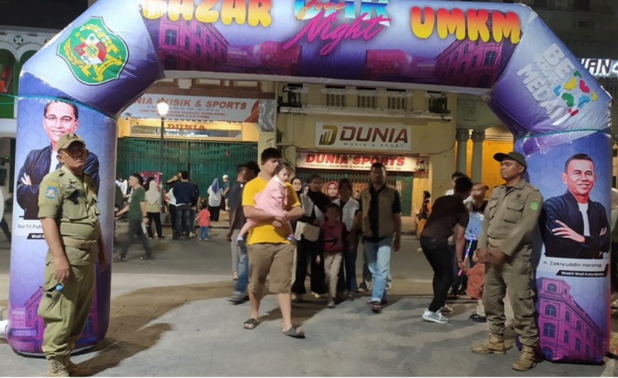 Satpol PP Kota Medan melalui penampilan Praja Wibawa Band turut serta menghibur masyarakat yang hadir pada gelaran Car Free Night dan Personil Satpol PP Kota Medan melaksanakan PAM Trantibum guna menjaga kondusivitas gelaran Car Free Night tersebut.