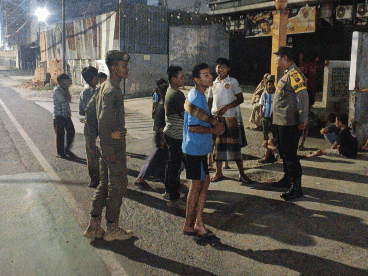 Petugas memberikan imbauan kepada kelompok remaja yang berkumpul agar segera membubarkan diri setelah melaksanakan ibadah dan tidak melakukan aktivitas yang dapat mengganggu ketertiban umum.