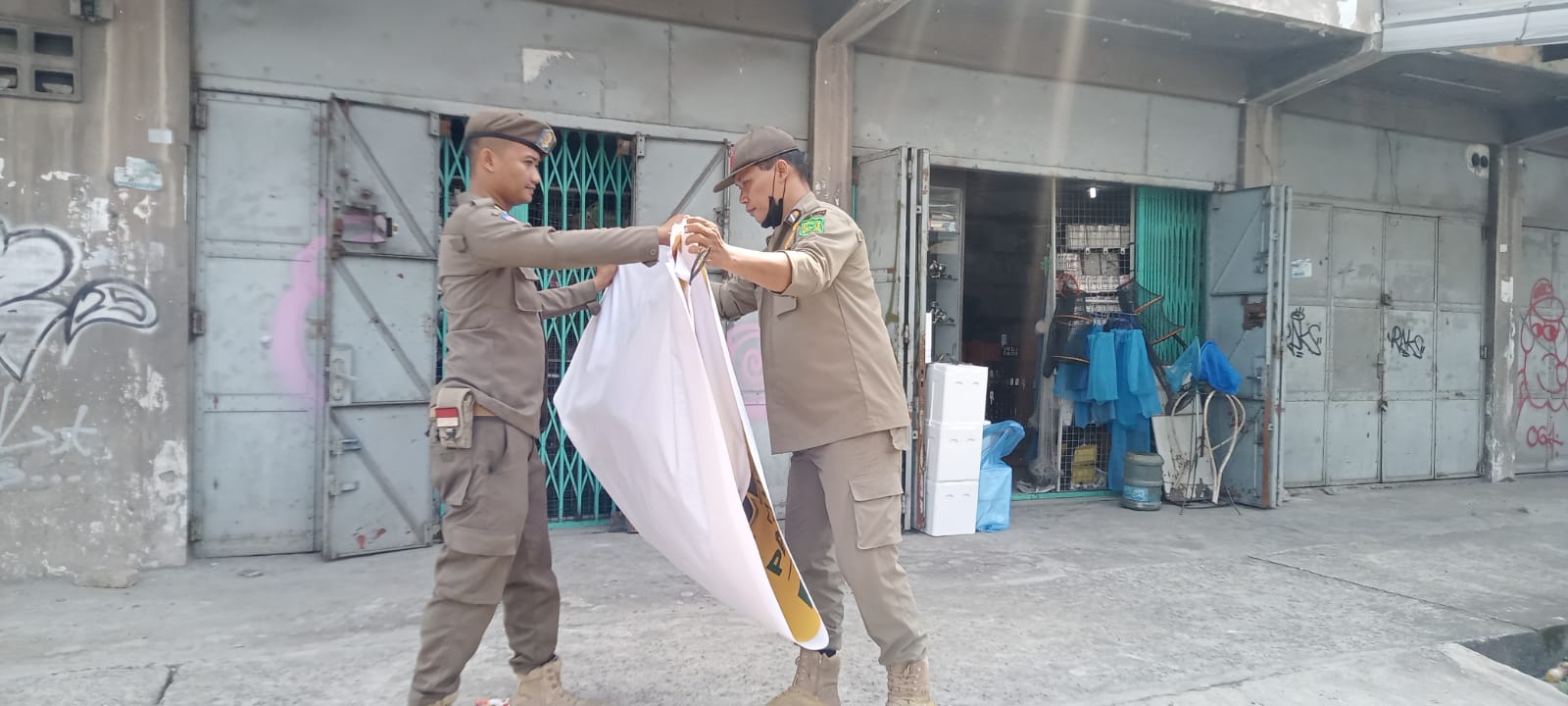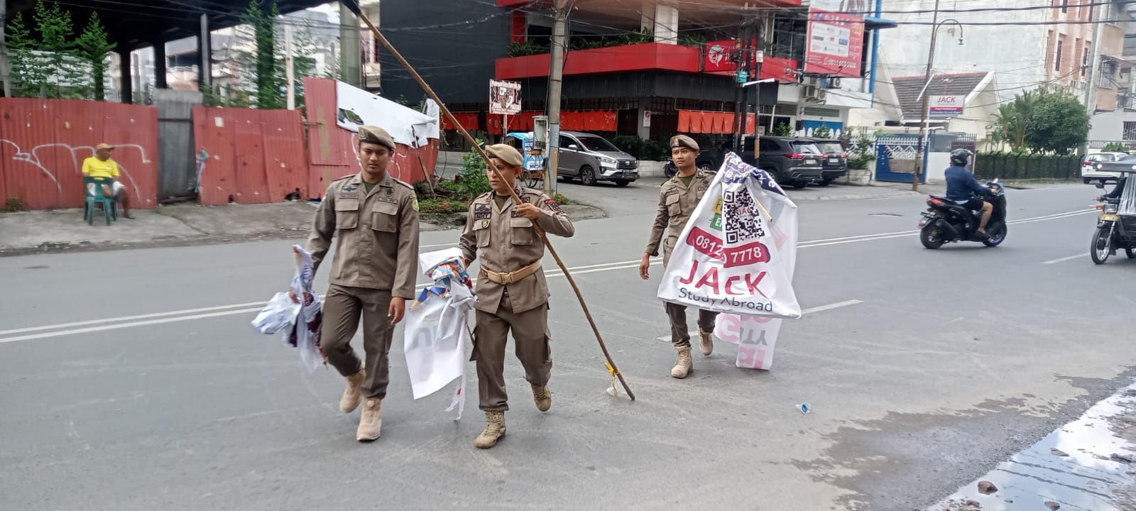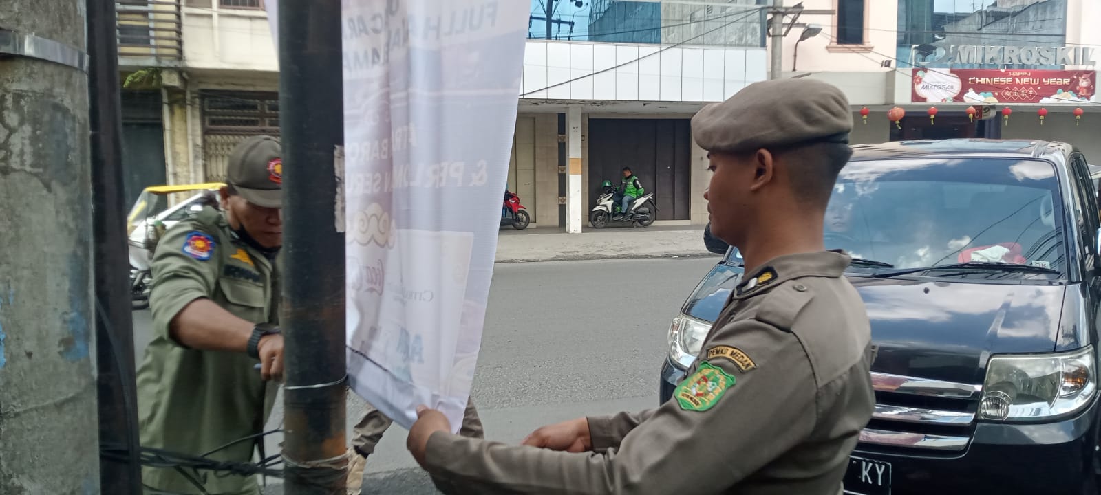 Operasi penertiban: Personel digerakkan untuk menertibkan atribut promosi yang tidak sesuai aturan. Ini termasuk melepas atau membongkar umbul-umbul ilegal yang dipasang sembarangan oleh masyarakat atau pelaku usaha tanpa izin.