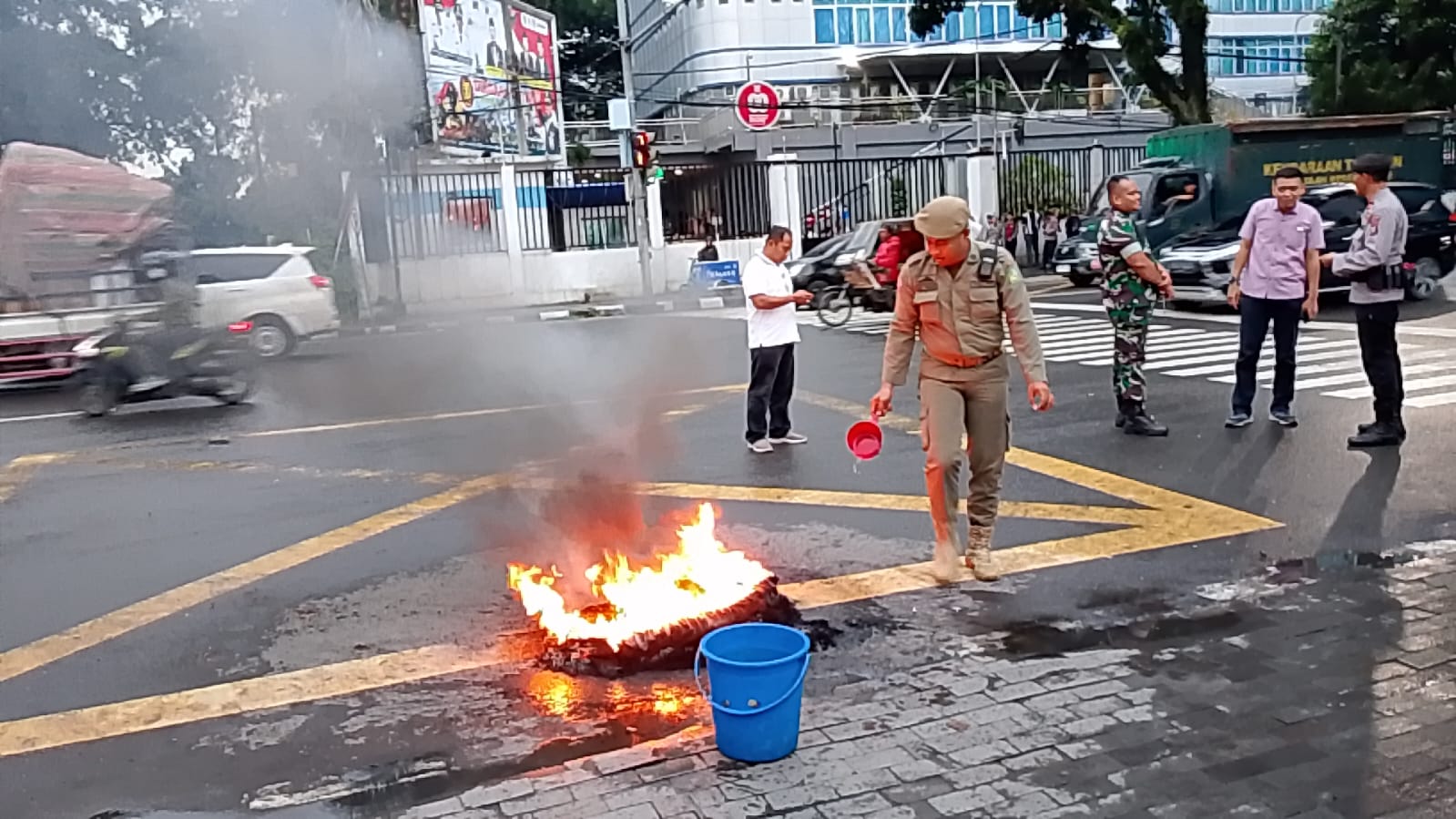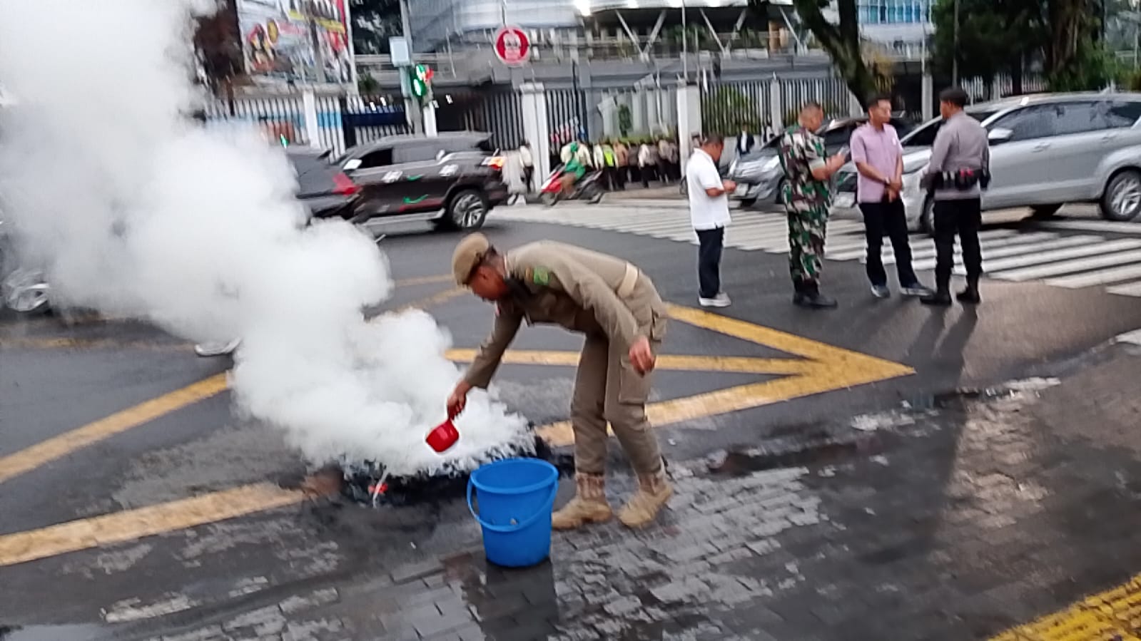 Dalam kegiatan tersebut, sempat terjadi pembakaran ban oleh massa pengunjuk rasa sebagai bentuk ekspresi tuntutan mereka. Personel Satpol PP dengan sigap melakukan pengamanan di sekitar lokasi dan setelah aksi berakhir, melaksanakan pembersihan area untuk memastikan lingkungan tetap bersih dan nyaman bagi masyarakat.Sekitar pukul 18.00 WIB, massa aksi membubarkan diri secara tertib, dan situasi di sekitar Kantor Wali Kota Medan kembali aman dan kondusif. Seluruh rangkaian kegiatan PAM Trantibum Satpol PP Kota Medan berjalan dengan baik berkat kerja sama yang solid antarinstansi serta kedisiplinan personel di lapangan.