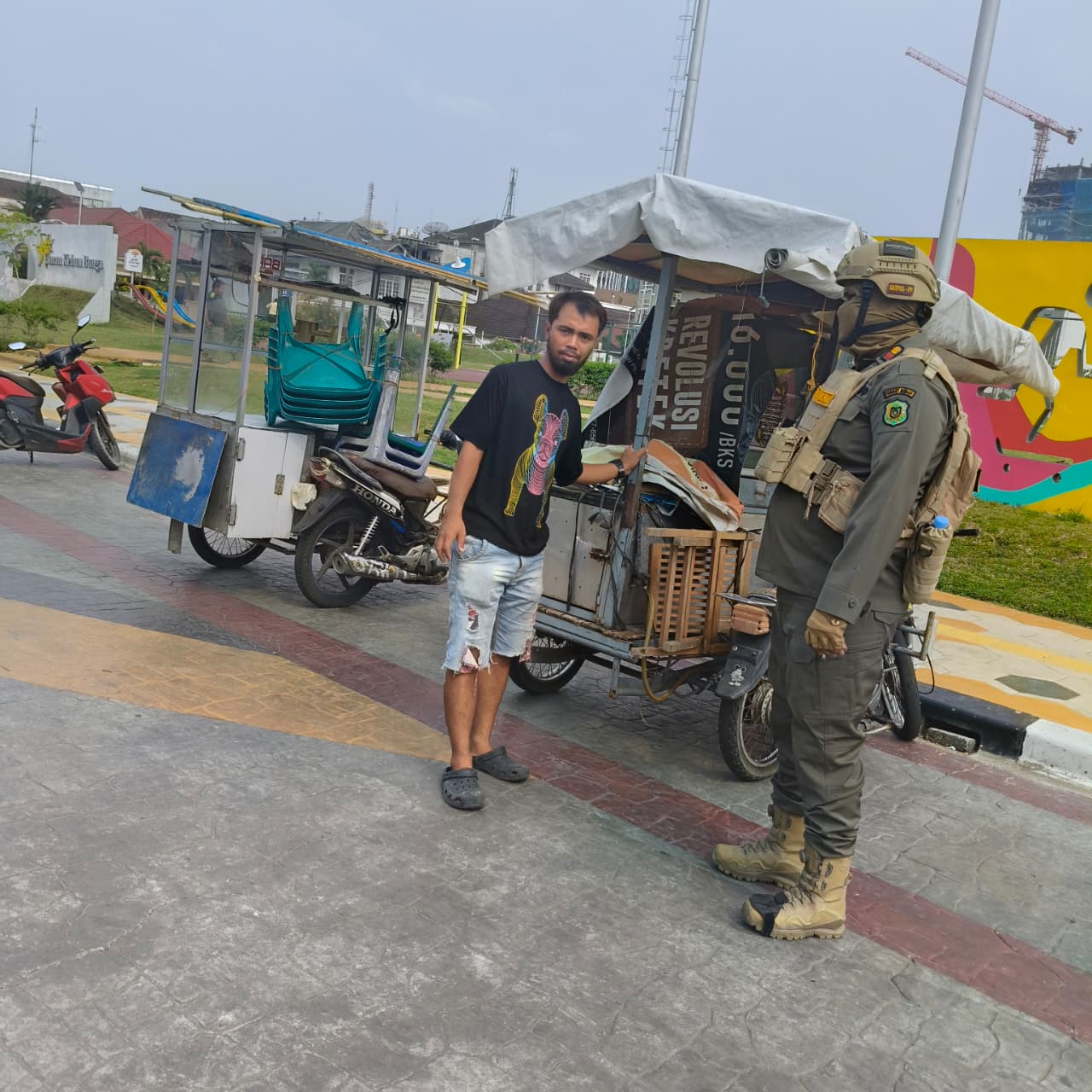 Kegiatan patroli dan sterilisasi pedagang kaki lima (PKL) yang dilaksanakan pada hari Jumat, tanggal 3 April 2026 di kawasan Kebun Bunga merupakan upaya penegakan ketertiban umum serta penataan ruang publik agar tetap nyaman, bersih, dan tertib. Kegiatan ini dilakukan oleh petugas terkait melalui pemantauan langsung di lapangan terhadap aktivitas para pedagang yang berjualan di area yang tidak diperbolehkan.