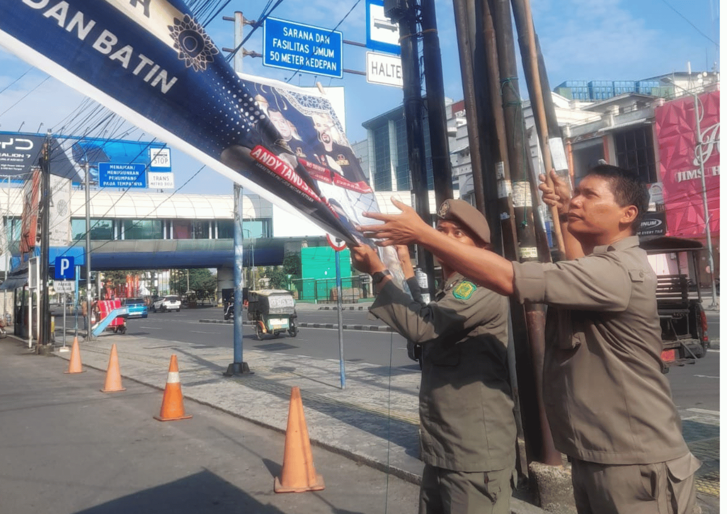 Namun, terhadap umbul-umbul yang tetap melanggar, dilakukan tindakan penurunan langsung oleh petugas dengan tetap mengedepankan sikap humanis dan profesional. Selain itu, personel juga melakukan pengawasan di titik-titik rawan guna mencegah terjadinya pemasangan kembali yang tidak sesuai aturan.
