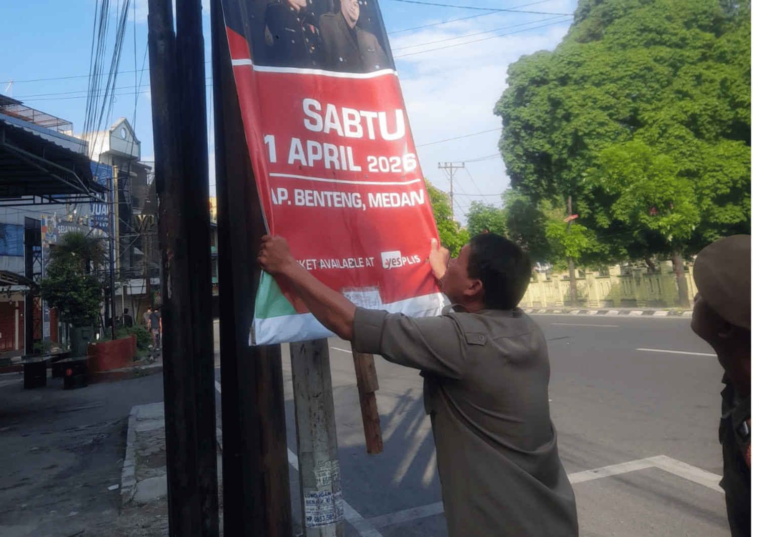 Kegiatan penertiban umbul-umbul dilaksanakan pada tanggal 19 April 2026 di wilayah Kota Medan sebagai upaya menjaga ketertiban umum, keindahan kota, serta penegakan peraturan daerah terkait pemasangan atribut dan media promosi di ruang publik.