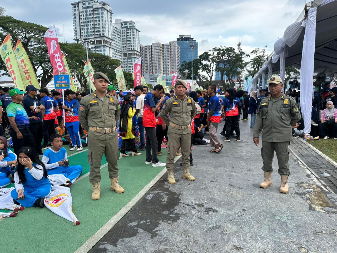 Sebagai bagian dari tugas pokok dan fungsinya, Satpol PP Kota Medan menurunkan puluhan personel untuk menjaga ketertiban, keamanan, dan kelancaran arus kegiatan, baik di dalam maupun di sekitar area stadion. Personel ditempatkan di sejumlah titik strategis seperti pintu masuk, tribun tamu undangan, dan area parkir, guna memastikan situasi tetap aman dan kondusif.Selain melaksanakan pengamanan, petugas Satpol PP juga turut melakukan pengawasan terhadap aktivitas masyarakat, serta memberikan imbauan persuasif agar acara berlangsung tertib dan nyaman bagi peserta serta tamu undangan.