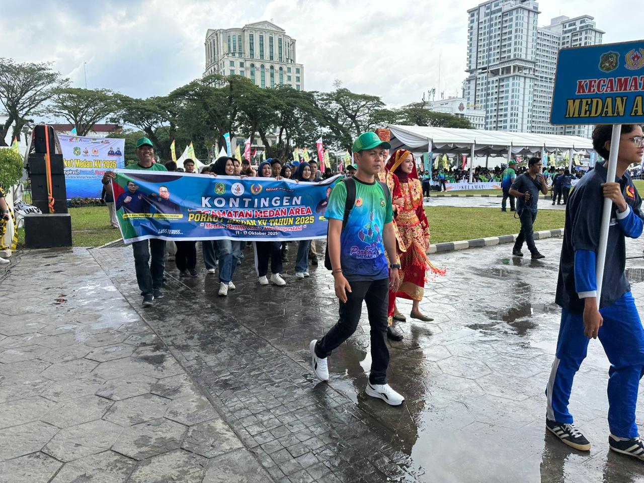 Kegiatan yang berlangsung di Stadion Teladan Medan tersebut dibuka secara resmi oleh Wali Kota Medan selaku Pembina Upacara. Dalam upacara itu, Wali Kota Medan menyerahkan piala bergilir, memimpin pengibaran bendera PORKOT Medan ke-XV diiringi lagu Mars Patriot Olahraga, serta menyalakan api PORKOT sebagai tanda dimulainya perhelatan olahraga tahunan antar-kecamatan tersebut.Turut hadir mendampingi Wali Kota Medan, Kepala Satuan Polisi Pamong Praja (Kasat Pol PP) Kota Medan, yang bersama jajaran Forkopimda menyaksikan langsung jalannya upacara pembukaan.