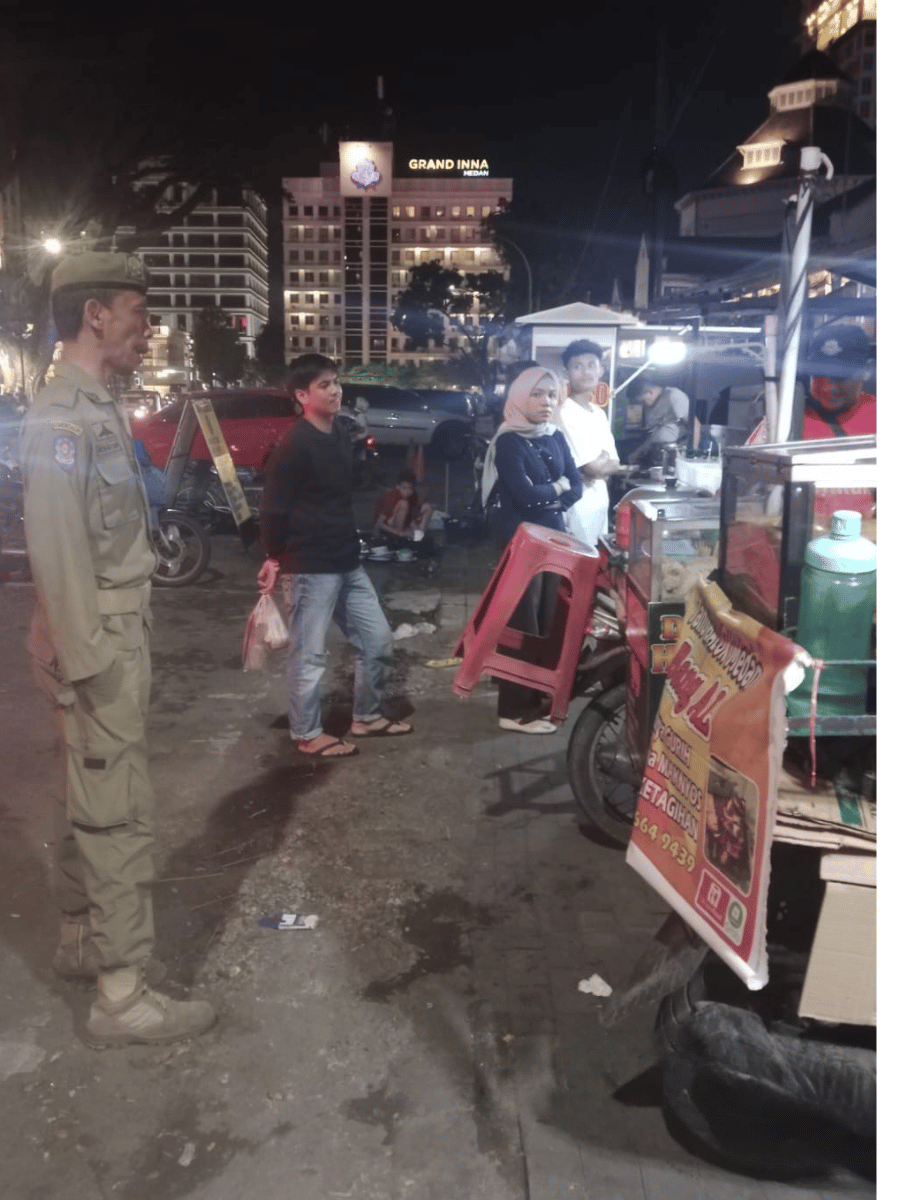 Dasar KegiatanDalam rangka menjaga ketertiban umum, kebersihan, serta kenyamanan masyarakat di kawasan Lapangan Merdeka Medan, pada hari Senin tanggal 16 Februari 2026 dilaksanakan kegiatan patroli malam guna memberikan himbauan kepada Pedagang Kaki Lima (PKL) yang beraktivitas di sekitar lokasi.