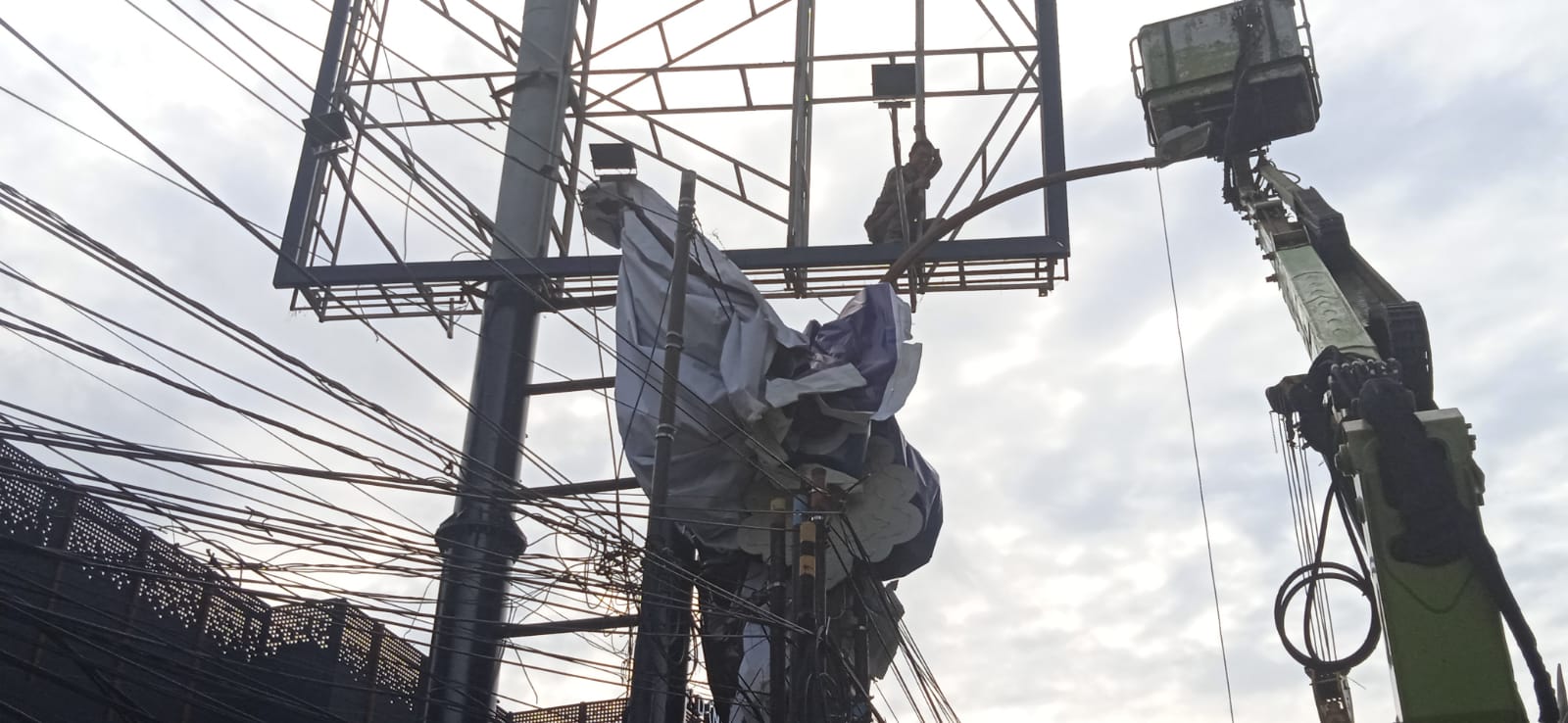 Penertiban tersebut dilatarbelakangi oleh adanya pelanggaran perizinan dan/atau ketidaksesuaian konstruksi reklame dengan ketentuan yang berlaku, baik dari aspek administratif, teknis bangunan, maupun keselamatan lingkungan sekitar. Keberadaan billboard dinilai berpotensi mengganggu ketertiban umum, keselamatan pengguna jalan, serta estetika kawasan.