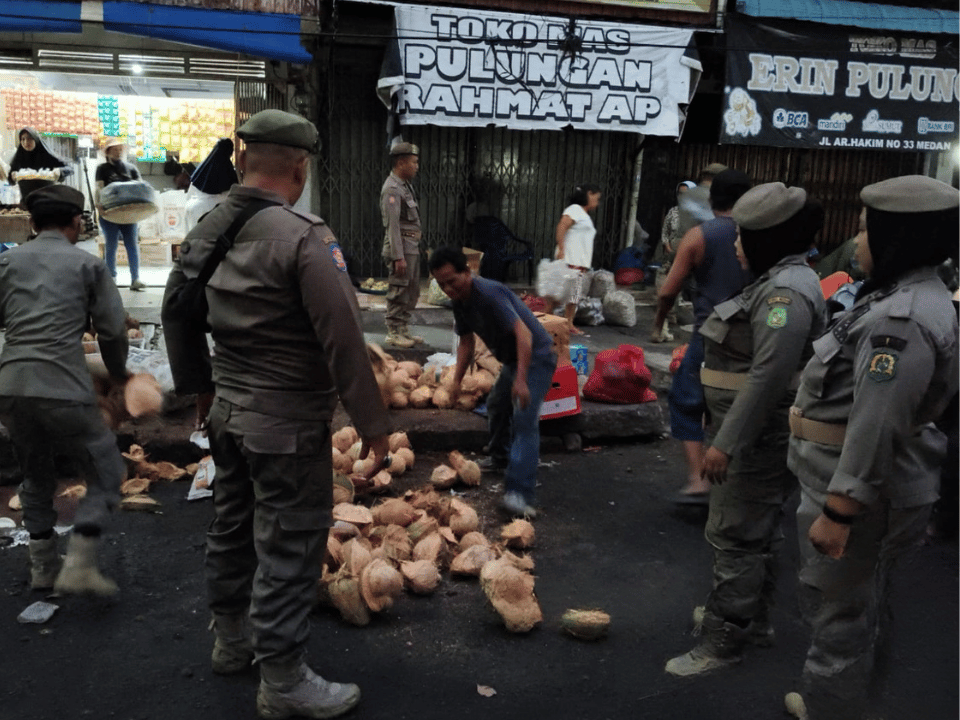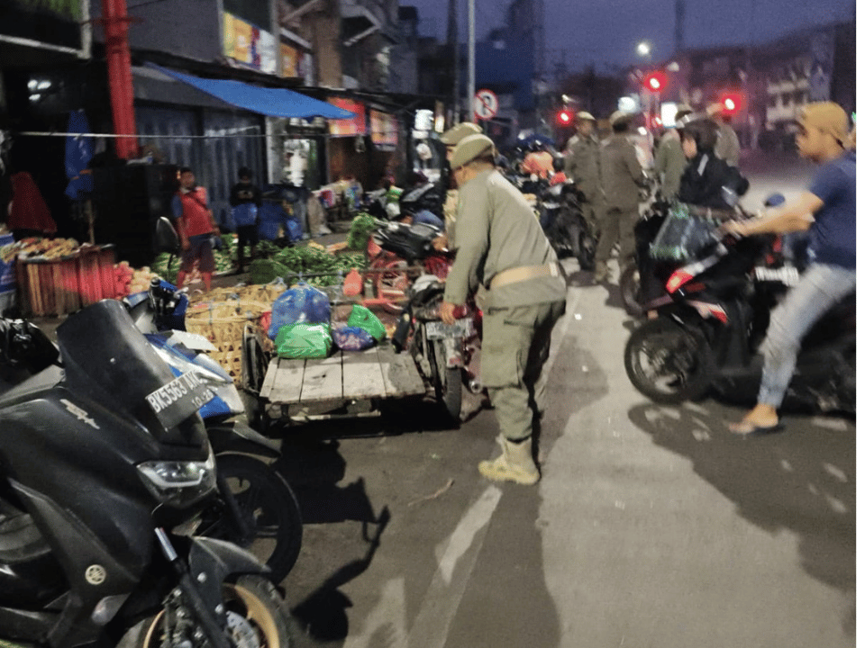Personel melakukan penataan terhadap pedagang kaki lima yang berjualan di luar area yang telah ditentukan, khususnya di badan jalan dan fasilitas umum, serta memberikan imbauan secara persuasif dan humanis agar pedagang mematuhi ketentuan yang berlaku.