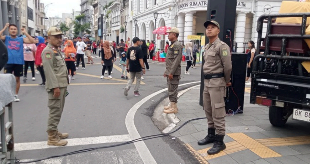 Dalam rangka menciptakan suasana aman dan kondusif, personil Satuan Polisi Pamong Praja Kota Medan melaksanakan kegiatan penjagaan dan pengamanan Acara Car Free Day di seputaran Lapangan Merdeka. Personil Satpol PP Kota Medan Melaksanakan Kegiatan PAM Trantibum dengan melakukan mobile /patroli di seputaran lokasi untuk memastikan keadaan wilayah seputaran penjagaan dalam keadaan aman dan kondusif. Kasat Pol PP Kota Medan menyampaikan melalui jajarannya bahwa dalam melaksanakan tugas PAM Trantibum dan menghimbau masyarakat ataupun PK5 dilakukan secara humanis dan persuasif agar tercipta kondusifitas di lokasi.