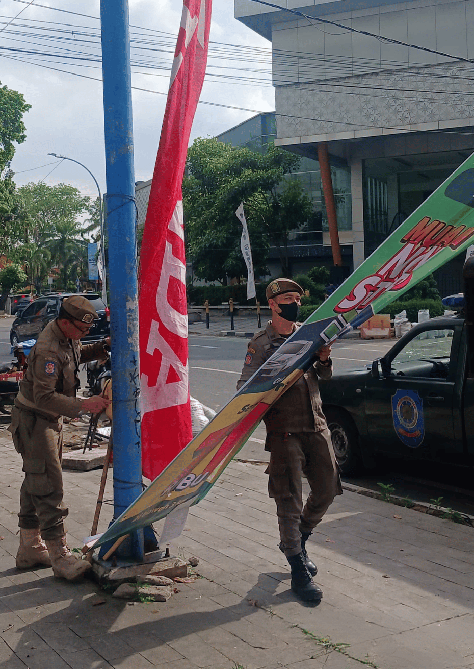Satpol PP melakukan pengawasan rutin dan menindak baliho yang tidak punya izin, tidak membayar retribusi, atau dipasang tanpa sepengetahuan kelurahan/kecamatan setempat.