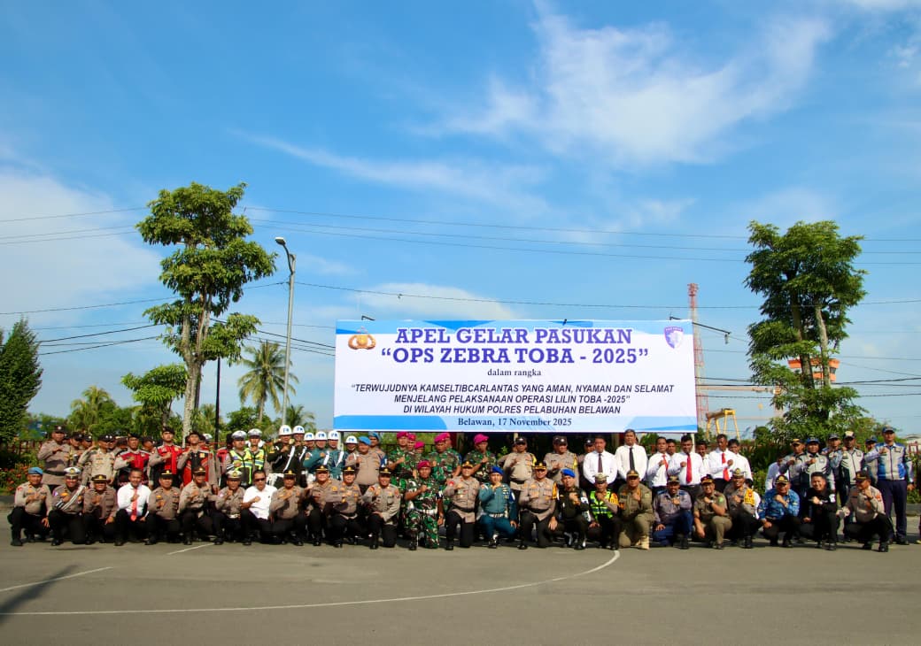 Polres Pelabuhan Belawan menggelar Apel Gelar Pasukan Operasi Zebra Toba 2025 pada Senin pagi sebagai tanda dimulainya rangkaian kegiatan penegakan disiplin berlalu lintas di wilayah hukumnya. Apel tersebut diikuti oleh unsur TNI, Polri, pemerintah daerah, serta para pemangku kepentingan terkait. PLH Kabid Tibum Satpol PP Kota Medan turut hadir dalam kegiatan ini sebagai bentuk dukungan terhadap upaya peningkatan ketertiban dan keselamatan berlalu lintas di Kota Medan, khususnya di kawasan Pelabuhan Belawan.